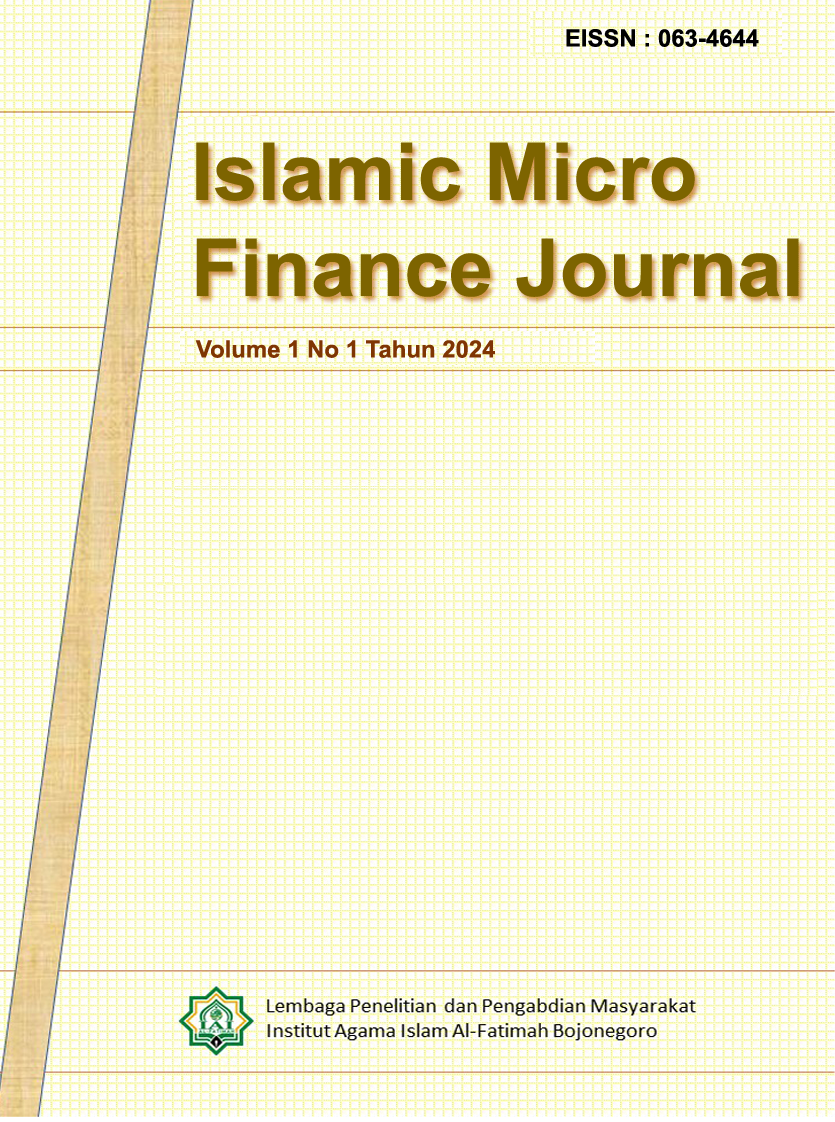 Editor in Chief: Fitria AsasManaging Editor : Moch Sulchan Publisher : Institut Agama Islam Al-Fatimah Bojonegoro Frequency: Three issues per year (February, June and October)Indexing: Google Scholar, Garuda Islamic Micro Finance Journal is a peer-reviewed, double-blind journal published by Lembaga Penelitian dan Pengabdian Masyarakat (LPPM) at Institut Agama Islam Al-Fatimah Bojonegoro, East Java, Indonesia. Islamic Micro Finance Journal publishes research and concept papers in the field of Islamic micro finance, Islamic banking, and Islamic Finance Institutions, in an open-access format, allowing users to freely access and download the articles.